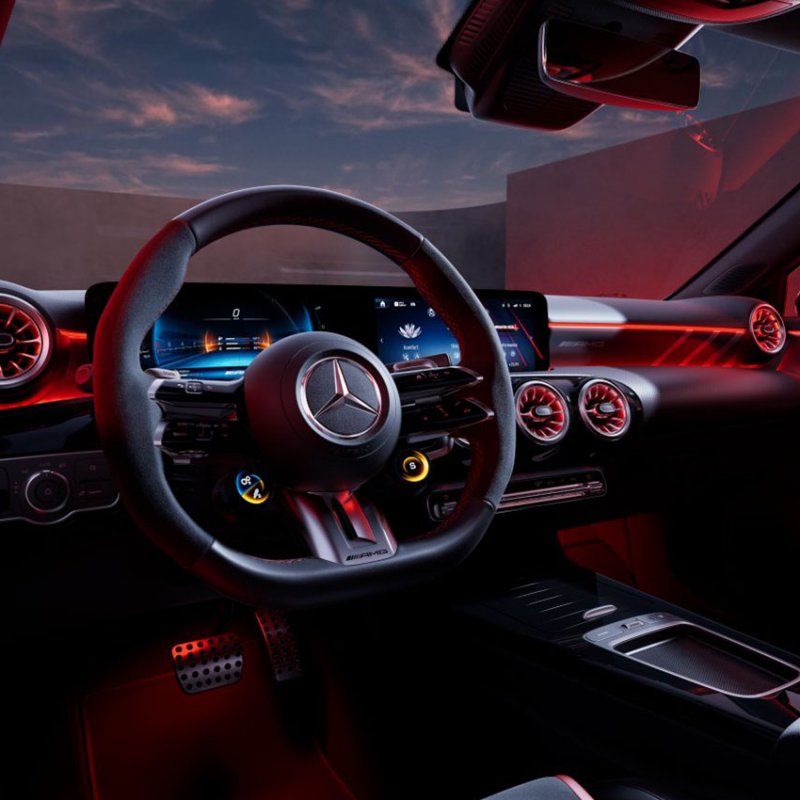 El interior AMG de alta calidad con equipamiento deportivo y sistema de infoentretenimiento MBUX intensifica el vínculo personal entre conductor y vehículo. Los asientos AMG Performance realzan su carácter competitivo.