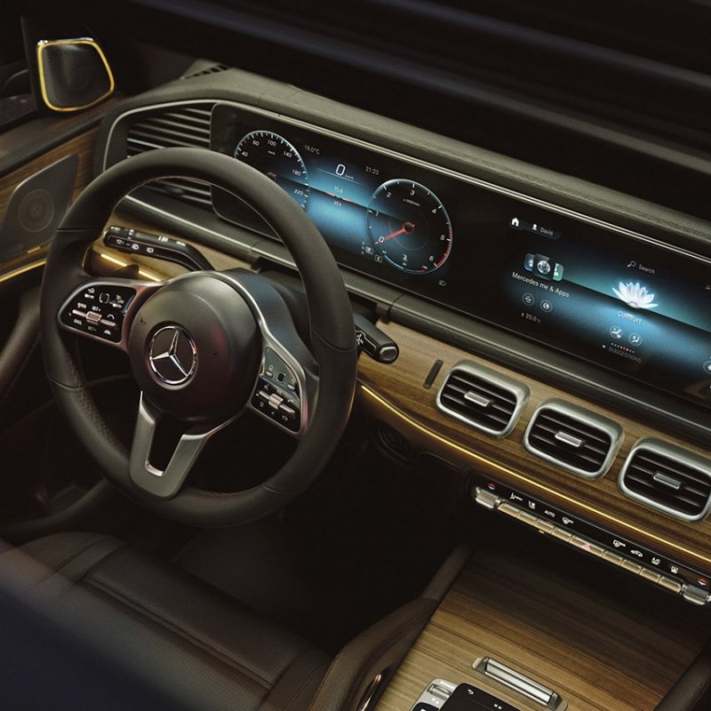Gracias a sus tapizados y refinados elementos distintivos, si buscas estilo propio e inconfundible, podrás hallarlo en GLE. Exquisita iluminación ambiental de 64 colores, techo panorámico mucho más grande y lo último en tecnología para más confort.