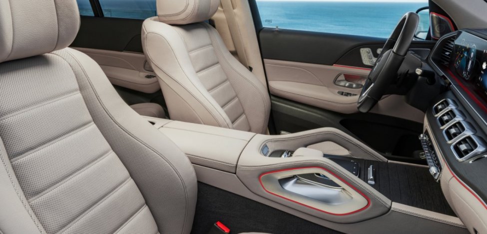 El tablero de instrumentos y la línea de cintura de las puertas en napa le dan una expresión de singular elegancia a la GLS y sus costuras de adorno un carácter único y especial.