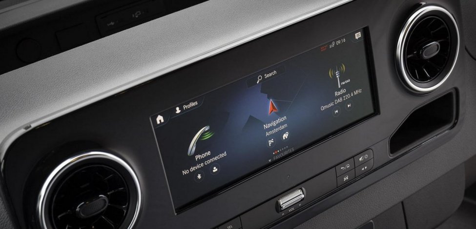 Nuestras Sprinter pueden incluir de forma opcional el sistema multimedia MBUX (Mercedes-Benz User Experience) con pantalla táctil de 7 pulgadas combina entretenimiento con información importante para la navegación y control del vehículo. Disponible en versiones chasis, furgón y minibús.